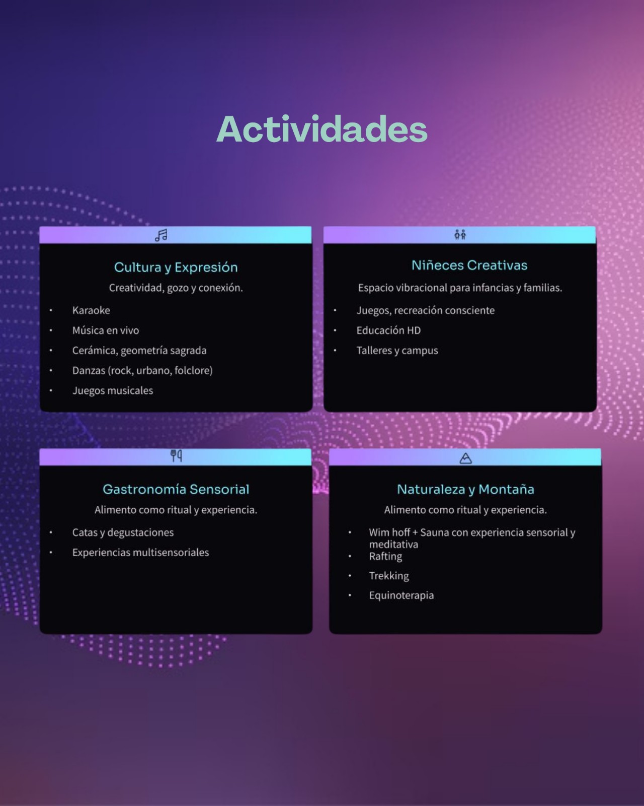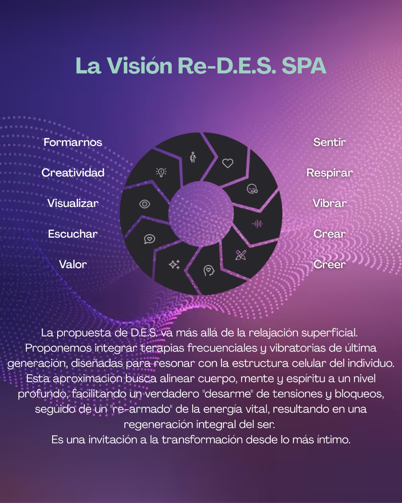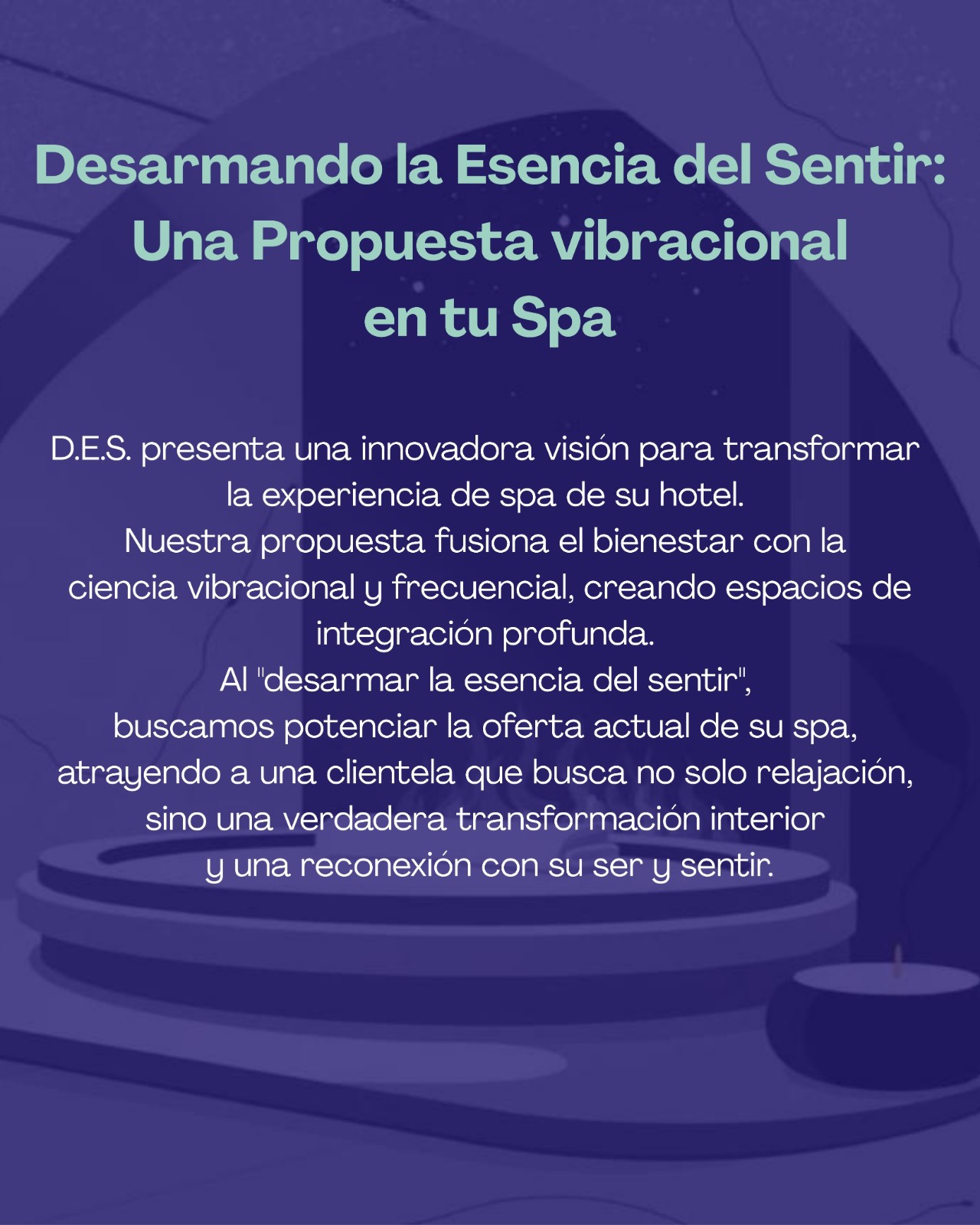 Pensada para hoteles & spa que buscan posicionarse como centros vibracionales de referencia. El huésped vive una estadía transformadora, mientras el hotel se diferencia como un destino de bienestar integral y consciente.
